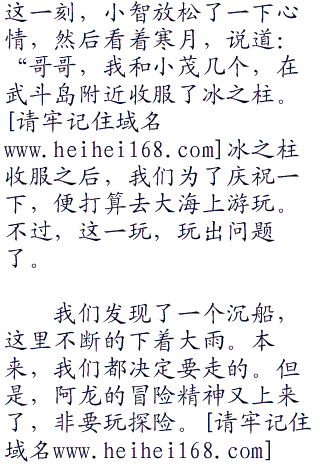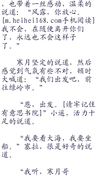 风露,看着寒月,嘴角甜甜的一笑,点了点头,说道:“寒月哥哥去哪里,我就出哪里。总之寒月哥哥,你不能够在离开我了。”