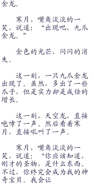 金龙,寒月巨大的快龙,使用寒月的血脉,进化而出。样子,正是传说之中,五爪金龙一样。