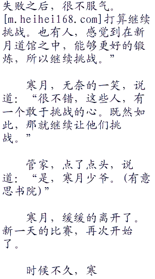 这一刻,寒月不禁一愣,然后好奇的看着四周,然后直接问道:“管家,今天怎么回事。怎么今天,没有挑战者。”