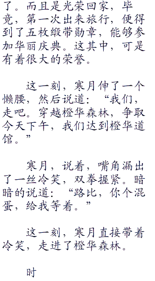 寒月,看着手表,不禁说道:“已经第七天了,在新月道馆,竟然待了七天了。”
