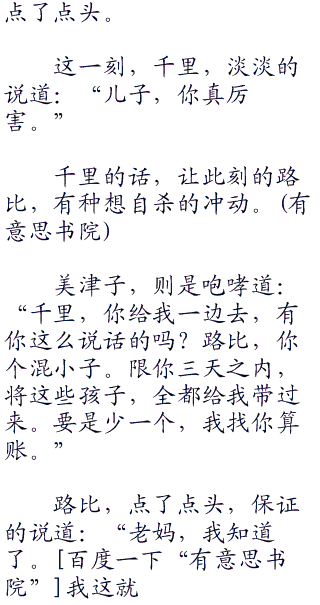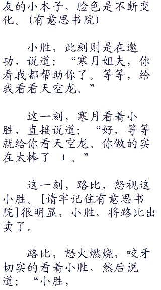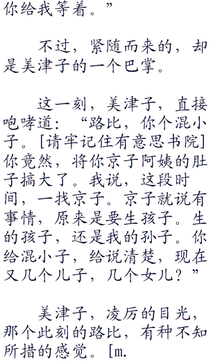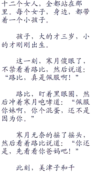 千里,怒不可赦。据说,这个女的,是千里以前旅行认识的朋友。和千里,差不多年纪。如今也成为路比的一个女人。这自然,让千里火大了!