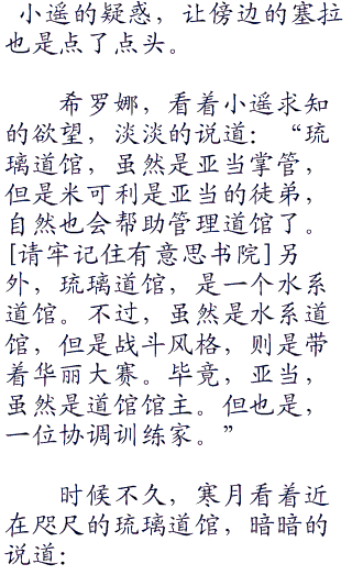 嘉德丽雅,看着寒月兴奋的样子。鼓起小嘴,无奈的问道:“寒月哥哥,你就这么迫不及待,挑战琉璃道馆。米可利,就这么招人恨。”