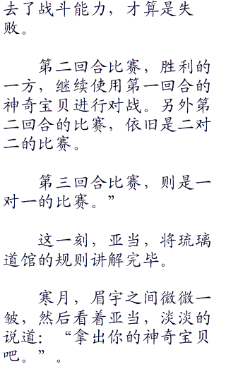 很快,寒月一行人,来到了神奇宝贝中心,将行李放入了神奇宝贝中心,然后向着琉璃道馆走去。