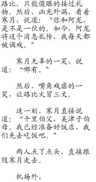 寒月,无奈的一笑,想起小茂的苦笑。也是无奈的摇了摇头,说道:“好吧,我知道了。既然如此,我先联系一下。明天好好招待一下千里伯父,美津子伯母。”