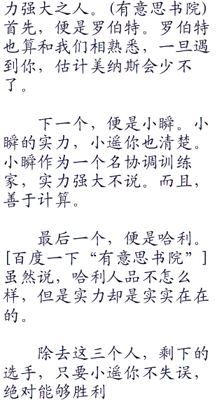 寒月,无奈的摇了摇头,看着小遥,说道:“别看我,你也知道华丽庆典的对手,都是打乱处理的。不过,小遥你注意的对手,只有几个。”