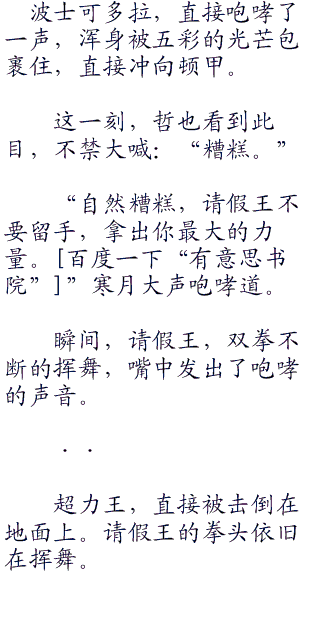 请假王,仰天咆哮,巨吼的声音化成层层力量。请假王,双手已经化成银色,直接向着超力王踏步而去。波士可多拉,身上散发着银色的光芒,咆哮一声,直接冲向了顿甲。