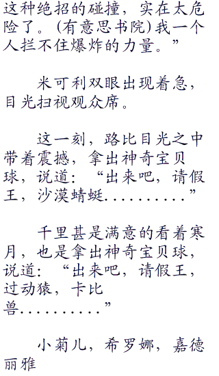 米可利站在观众席的边缘,直接大吼道:“千里,路比,希罗娜,小菊儿,嘉德丽雅,你们全都给我出来。