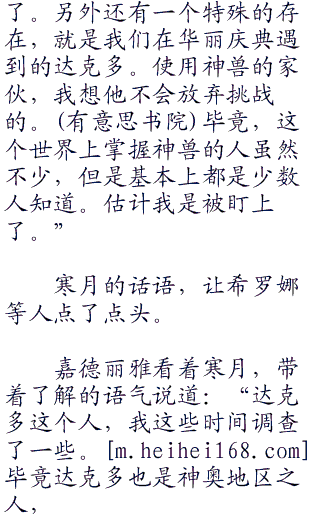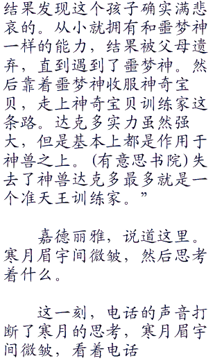 嘉德丽雅捂着额头,无奈的看着塞拉,说道:“真是一个傻丫头,一个波克比就打发你了。”