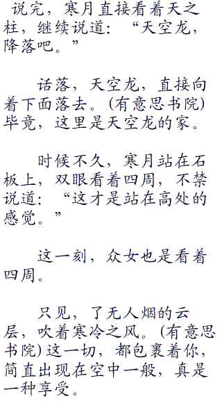 寒月目光看着脚下的天空龙,嘴角出现戏虐的目光,转过头,看着议论纷纷的众女,只能说道:“别再议论了,你们说的疑问,全都在你们脚下。”