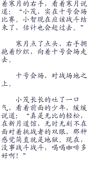 这一刻,小刚拿起书中的笔记,缓缓说道:“寒月小智,我刚才计算了一下。几天的淘汰赛,你们应该在十点左右进行比赛。按照规则,是二对二的双打比赛。以你们的实力,应该很轻松便通过了。”