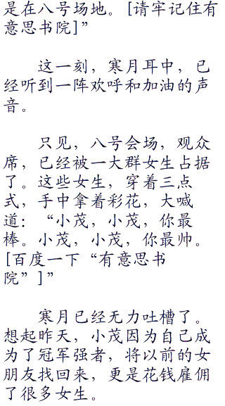 娜娜美无奈的点了点头,尴尬的说道:“我也不知道,小茂是怎么想的。竟然找这么多的女孩子过来加油。”