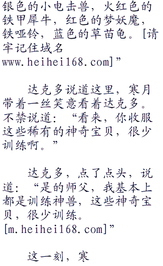 达克多,点了点头,说道:“我很少收服普通的神奇宝贝。不过,一些稀有的神奇宝贝,我还是会收服的。不过数量也是不多。这些神奇宝贝有着:小地龙,单首龙,
