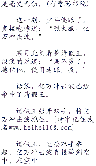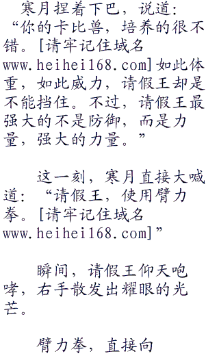 寒月嘴角一笑,说道:“请假王,举起双手挡住这个延烧殆尽。”