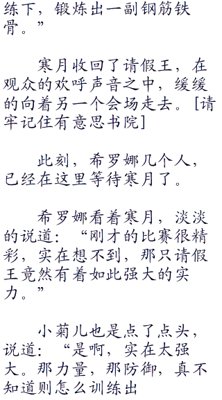 寒月嘴角淡淡一笑,暗道:“请假王,在大海的冲击下。在海底的压力下,在瀑布下,在铁砂瀑布下,在烧红的铁砂瀑布下,在特质的重力室下...........一身的防御力,比神兽还要强大。”