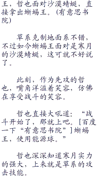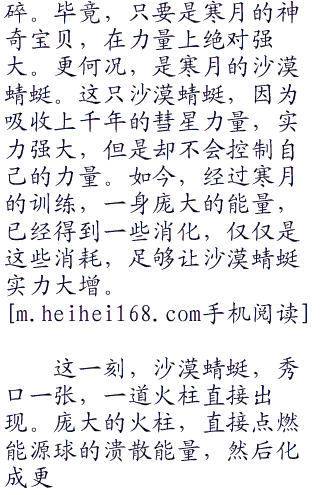 龙系加上地面系的沙漠蜻蜓,在众多龙系神奇宝贝之中,也算是靠后的。不过,沙漠蜻蜓,在普通的神奇宝贝之中,也算是强大的存在。尤其是,寒月这一只沙漠蜻蜓,活了上千年,吸收彗星的力量,庞大的实力更是有种无敌的感觉。