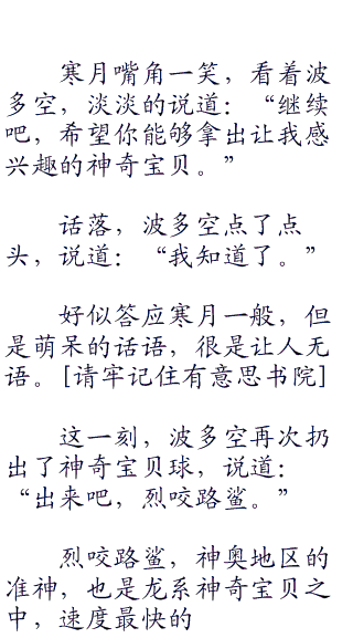 波多空作为伊修地区龙之谷的天才,手上龙系神奇宝贝可以搞批发。寒月作为实力强大的选手,已经提前预定了冠军,对于这场比赛,寒月只想见识见识波多空的实力。