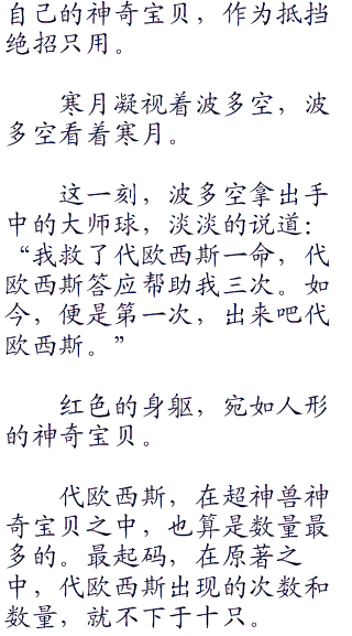 波多空无奈,看着手中最后一只神奇宝贝,心中不由看向寒月。