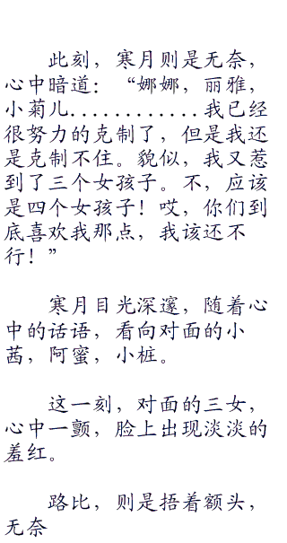 寒月对于小茜的话语,只能够无奈的一笑。想起,当初被小茜追着逼婚,那样子还是有些狼狈。