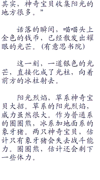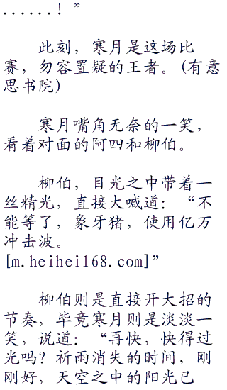 寒月,嘴角浮现一丝微笑,说道:“一个全面攻击,一个集中攻击。配合默契,神奇宝贝实力也强大。有点意思,但是仅仅如此,还是远远不够。”