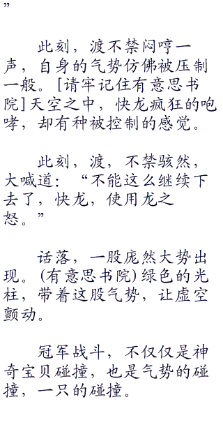 渡的意志,渡的冠军意志。来自于龙,一种龙的霸气。