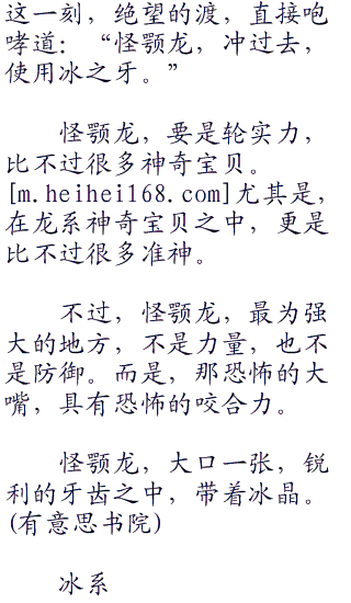 寒月的目光,凝视地面上的怪颚龙,不禁说道:“渡,没想到,你连卡洛斯地区的龙系神奇宝贝都搞到手了。不愧是,龙系冠军。既然怪颚龙,不能够飞行,那我就使用这一只龙系神奇宝贝吧!”