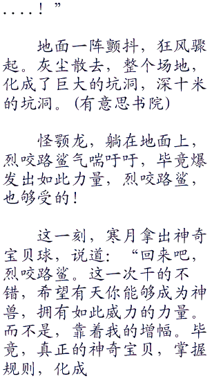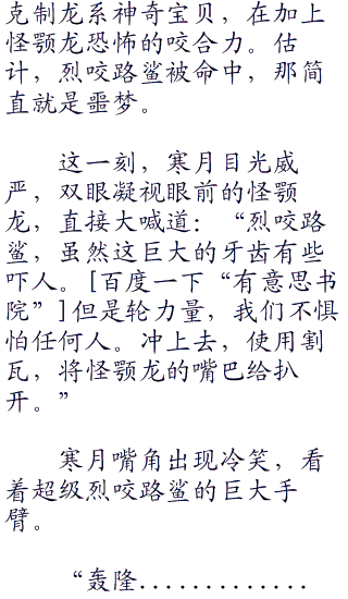 寒月直接扔出神奇宝贝球,大喊道:“出来吧,烈咬路鲨。”