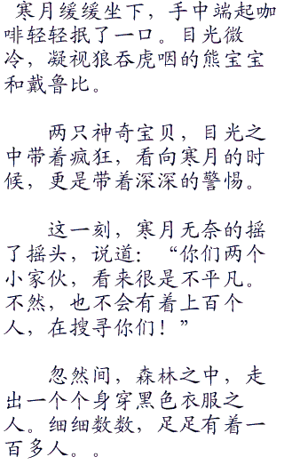寒月嘴角一撇,眸子之中带着笑意,再次抿了一口咖啡。
