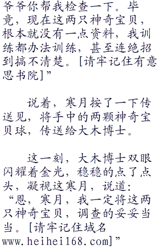 “寒月,寒月.....我的孙女婿,爷爷听说你得到一只远古神奇宝贝,一只灭绝的神兽?”大木