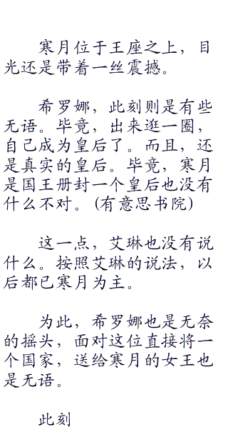 寒月眉宇间微皱,看着傍边的侍女,问道:“艾琳女王呢?”
