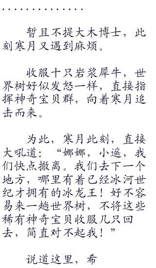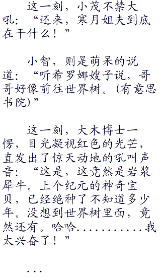 绿色的青苔,好似一个巨大的树木一般。不过这坚硬的岩石,让寒月看起来,世界树就像是一个化石。