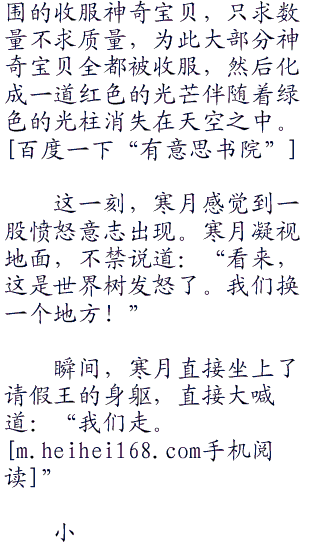 希罗娜身穿一身棉衣,目光凝视四周说道:“真是奇迹,不过更加奇迹的应该是这些神奇宝贝。寒月你快点收服,只求数量不求质量!”
