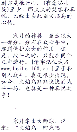 “不可思议,不可思议。物理攻击,对于火焰鸟来说,根本就无效。如此说来,只有特殊攻击一种手段。但是面对着力量不能用,这种诡异的能力。这只火焰鸟,真是强大无比!”