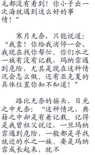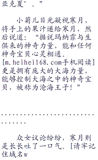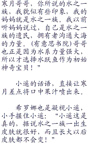 寒月直接坐在众女之间,目光之中带着一丝幸喜:“今天我竟然遇到玛纳霏,虽然仅仅是一个神奇宝贝蛋,不过那神奇宝贝蛋之中蕴含庞大的大海力量绝对是真实存在!”