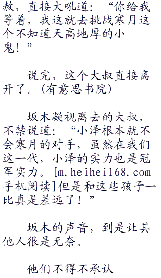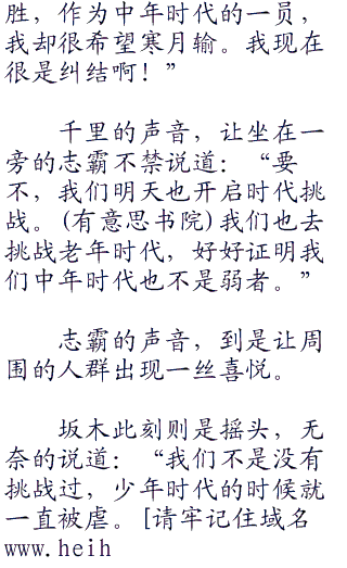 寒月直接摇头,嘴角浮现一丝笑容,带着威严的话语说道:“中年时代,我才不会看上眼。他们不过是废掉的一代,我们才是新生的一代。那群已经没有热血的大叔,他们还是老老实实在成为老头子吧!”