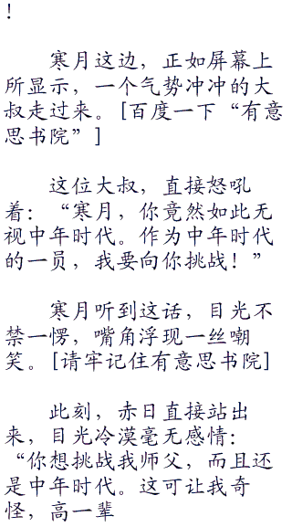 不得不说,寒月直接无视中年时代,招来很多大叔的怒火。