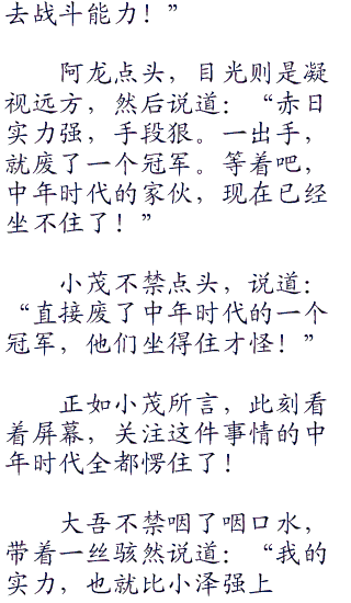 赤日,小泽,两人进行的便是冠军之战,也算是决死一战。