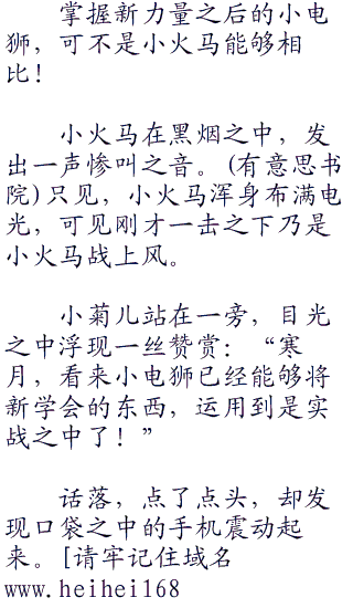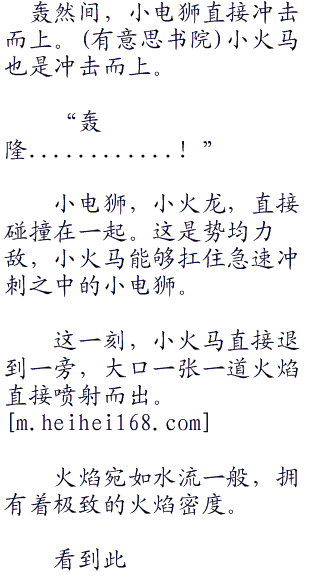 寒月也是呵呵一笑,带着一丝幸运的表情说道:“小电狮的对手,势均力敌的对手。想来是一只不错的小火马,另外有着小电狮带路,我的第三只神奇宝贝出现了!”