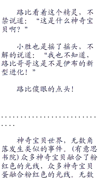 芳缘地区,路比带着一丝笑意,看着小胜说道:“小胜,怎么样。这可是伊布哦,能够进化很多神奇宝贝。这个伊布就是