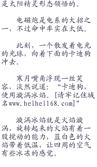 寒月嘴角微笑,看着飞速冲来的蓝白色火焰。