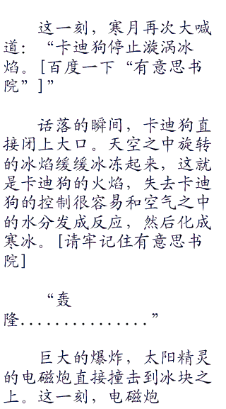 轰然间,蓝白色的火焰直接命中卡迪狗,卡迪狗直接缓缓化成冰块,但是此刻的卡迪狗却是在急速奔跑之中。