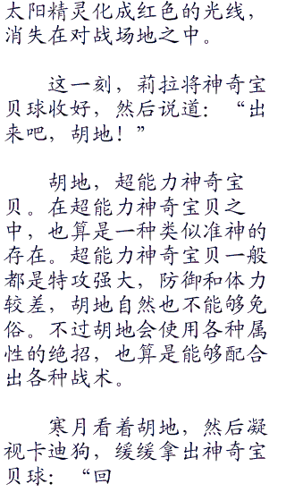 正如寒月所说,莉拉已经使用自己的能力,让自己的心灵和神奇宝贝相同,直接使用心灵指挥神奇宝贝。