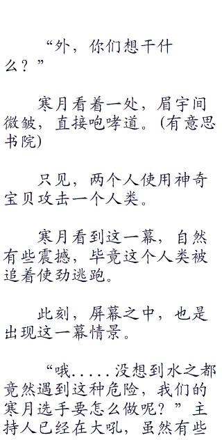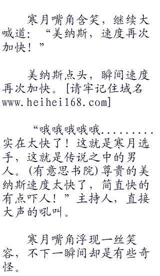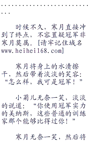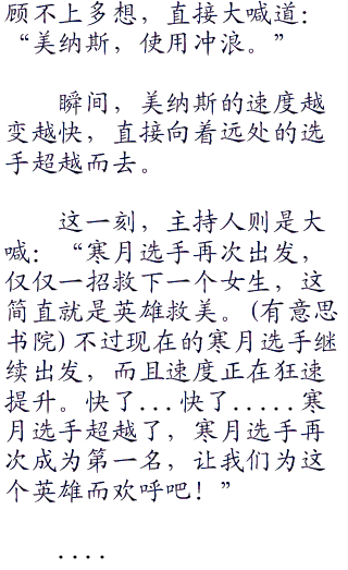 瞬间,美纳斯已经冲出一条河道。至于身后的选手,直接被寒月无视掉了。因为他们根本就不够格!