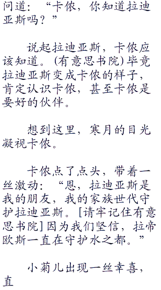 此刻,寒月无语了,眼前这个人明显是卡侬,而不是拉迪亚斯。
