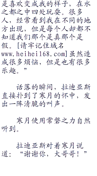 莉拉捂着嘴呵呵直笑,然后淡淡的说道:“寒月哥哥!”