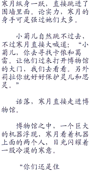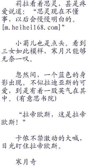 “灵儿,以后不要这么溺爱思灵。着这么弄下去,指不定还会弄出什么事情!”寒月无奈,一句话语灵儿呵呵一笑。