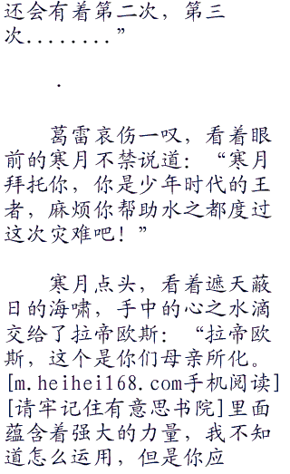 葛雷却是长长一叹,看着远处的桑娜:“这下糟糕了,心之水滴被拿走,这一次水之都将会毁于一旦啊!”