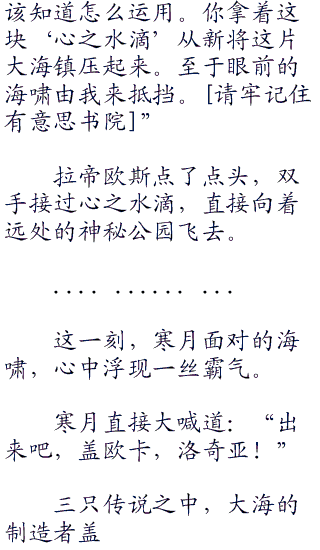 “怎么可能没有,心之水滴乃是镇压这片海域的神器。如果失去心之水滴,水之都便会面临毁灭!”葛雷不禁哀叹。