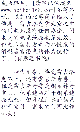此刻,神代看着出现的雷吉洛克甚是无奈。可以说,三神柱vs三神鸟,雷吉洛克最占据优势,毕竟三神鸟都有着飞行系的属性,岩石系绝招克制飞行系属性。而且三神鸟的属性根本就克制不了岩石系的雷吉洛克。