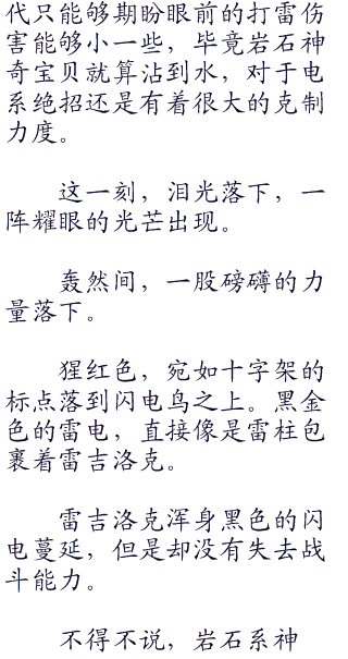 寒月目光带着一丝笑意,淡然说道:“闪电鸟,你是三只神鸟最强的存在。现在展现出你的力量吧。使用充电绝招!”
