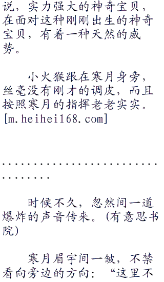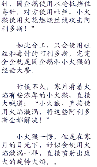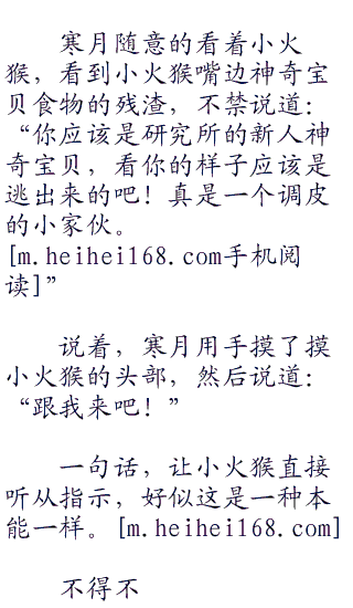 小火猴带着戏虐的目光凝视御天,但是寒月目光看着小火猴之后。小火猴忽然浮现一丝恐惧的心态,这就是寒月的气势,属于一个强大训练家的气势。